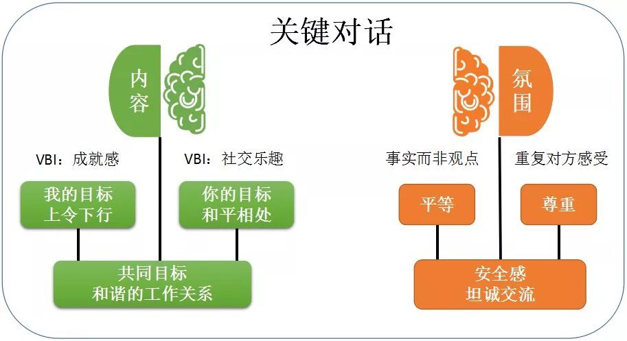 鲍勃:对,关键对话。 这本书的作者提出了一个很有见地的概念。 遇到敏感问题或者矛盾的事情,我们在谈话的时候一定要注意两个核心,就像人脑的两个部分:内容和语境,一个是谈话的内容,另一个往往被忽视的是谈话的气氛。 本书是上个月去德国出差时,我们人事部副总推荐给各位总监级管理人员的管理书籍。 读完这本书,我只有一个感受:讨厌相见恨晚。