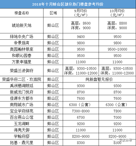 蚌埠楼市依然坚挺!快来看看10月份各区最新热门楼盘房价涨跌,你就都知道了!
