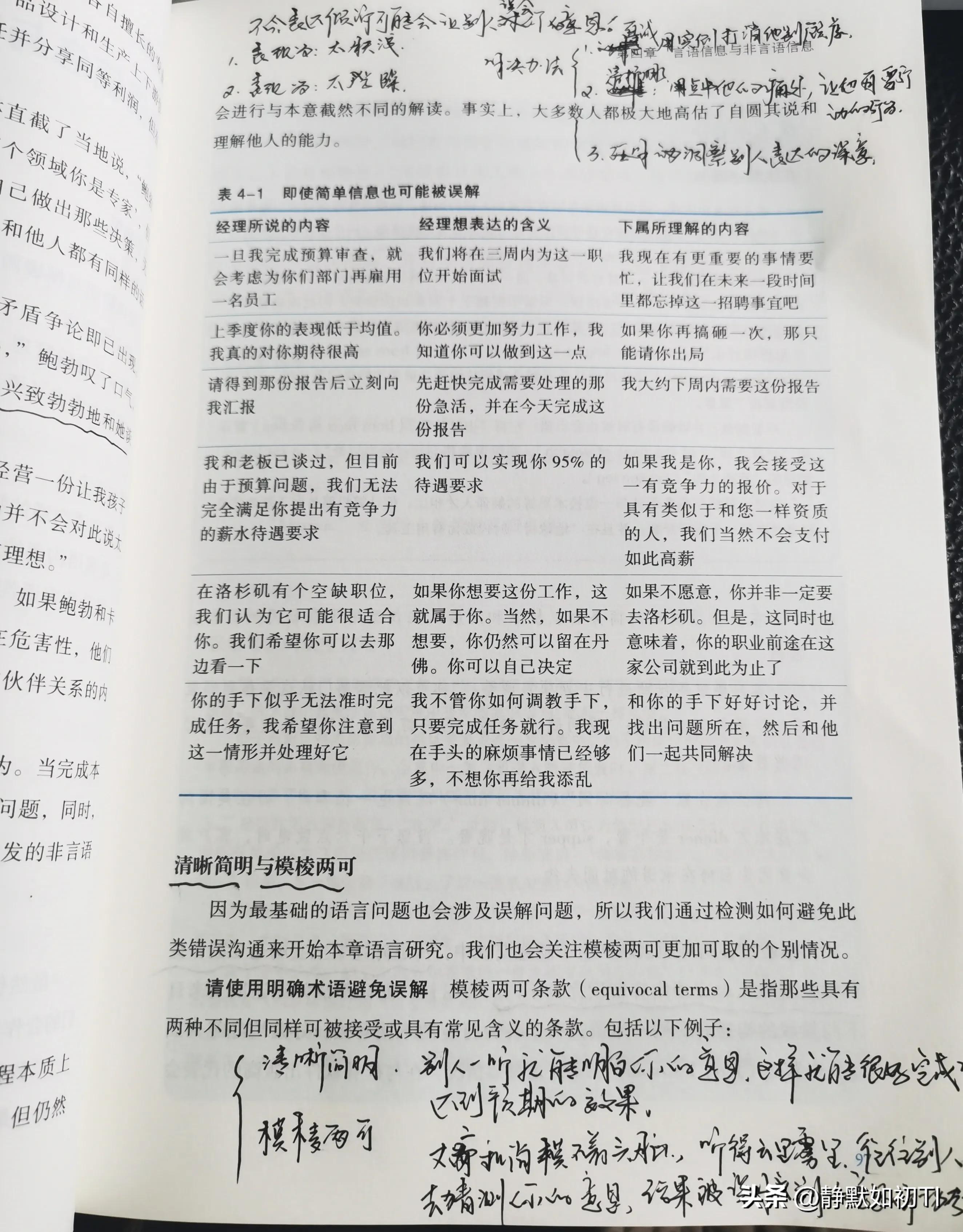卡耐基说:“如果你想成为一个善于谈话的人,首先要成为一个专注的倾听者。” 倾听是相互的,每个人都有责任达成共识。 要想与他人进行有效的交流,就必须充分理解他人表达的意思和用意,以免造成误解。 作者在书中写道职场沟通技巧的书籍,我们在听别人谈话时,要避开三种“噪音”,环境的、生理的和心理的障碍。 因为这些障碍会阻碍我们了解他人的信息。