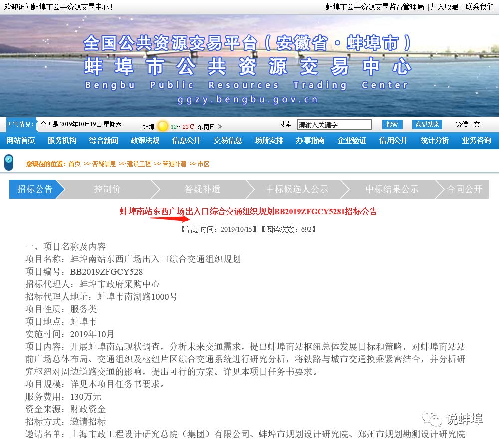 就在近日,蚌埠市公共资源交易中心发布蚌埠南站东西广场出入口综合交通组织规划招标公告! 一起来看看吧~