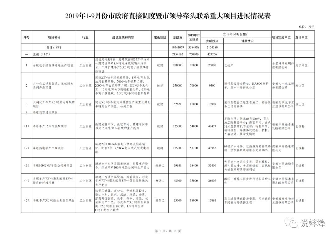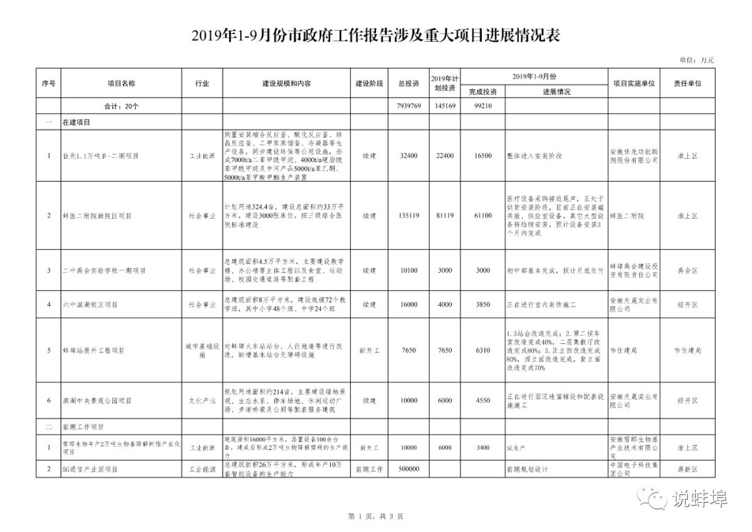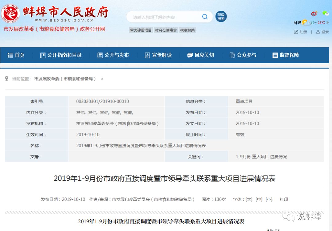 近日,蚌埠市人民政府网站公布了2019年1-9月市政府通报的重大项目进展情况和2019年1-9月市政府直接派出、市领导联系的重大项目进展情况。