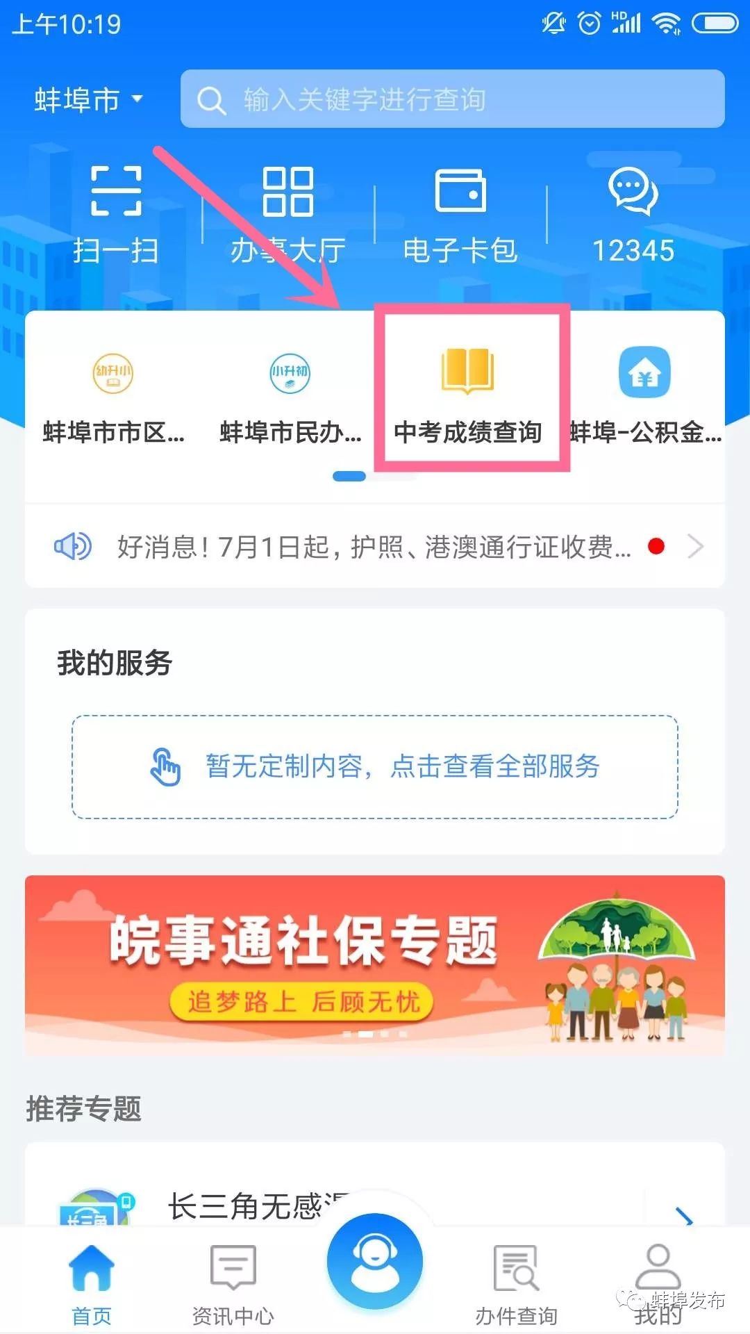 查询今年城市中考成绩的途径有3种。 一是在手机上下载“万事通”APP,输入考生的准考证号和身份证号,即可查询成绩。