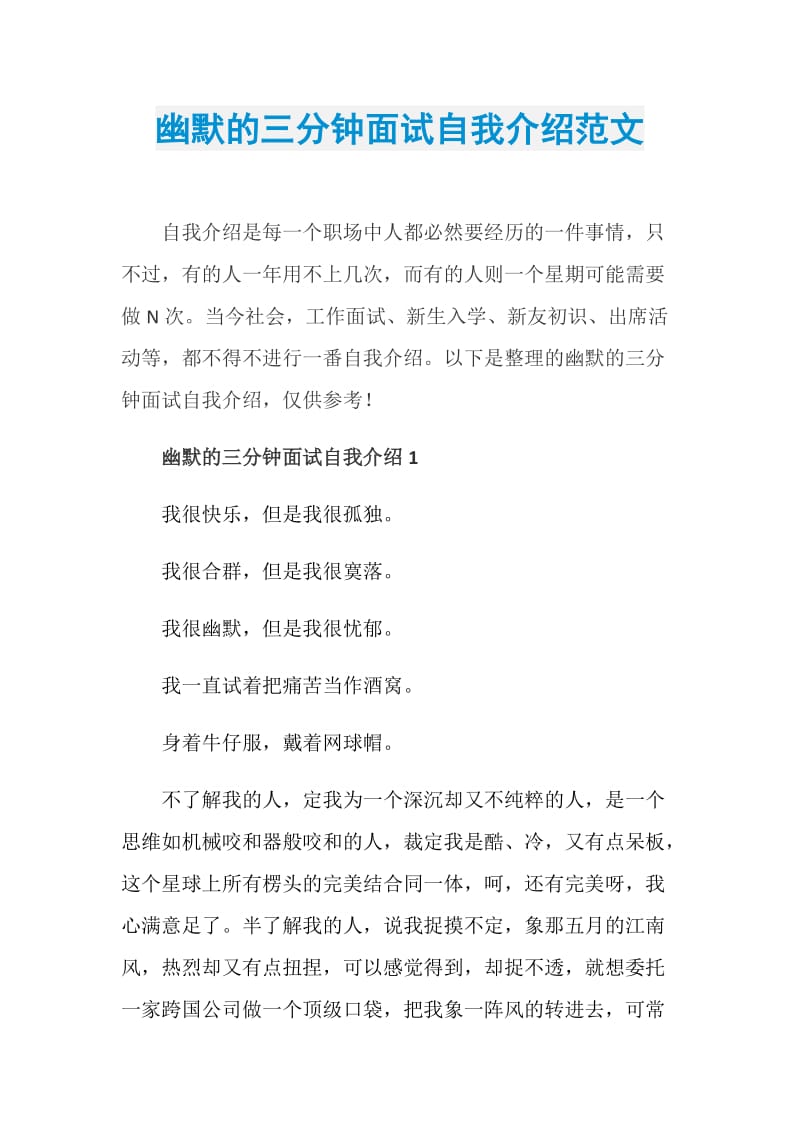 去面试的时候职场幽默风趣技巧答案,大部分的人员或者面试官一开始都会问这样一个问题:请简单介绍一下自己。