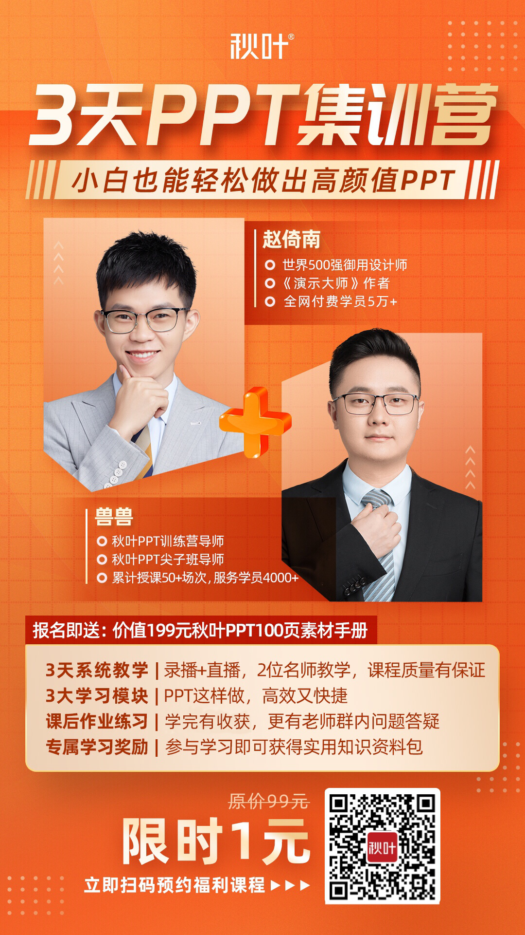 《3天PPT冬训体验营》课程原价99元,秒杀限时1元! !只需3天,实操+名师学习