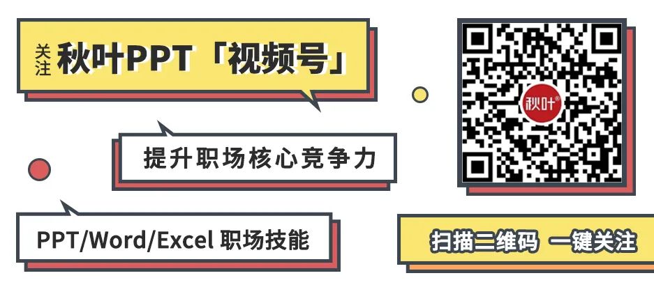 想了解更多PPT小方法,想看更多有趣的PPT小视频,请扫描下方二维码,关注【秋叶PPT】视频号~