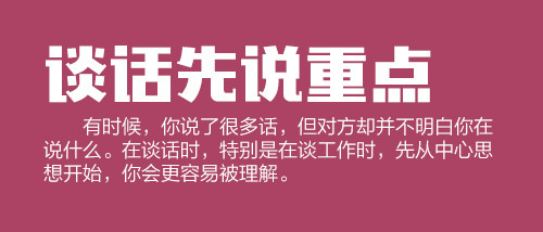 尤其是在工作中,一定要突出重点。 最忌讳的是话太多职场沟通技巧视频,根本不知道该说什么,这会严重影响你的工作效率,甚至影响你的工作能力。