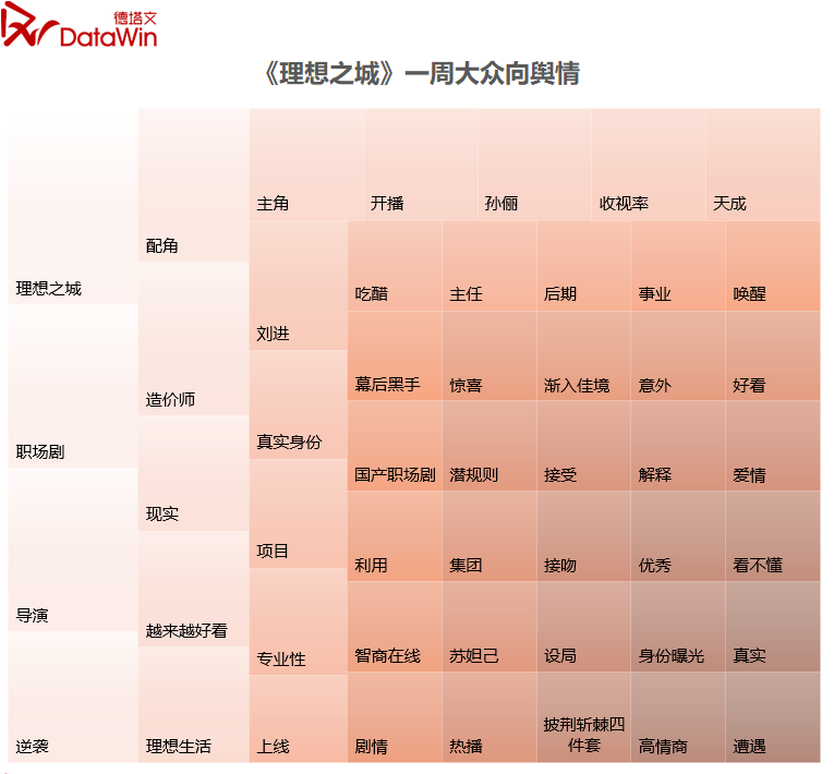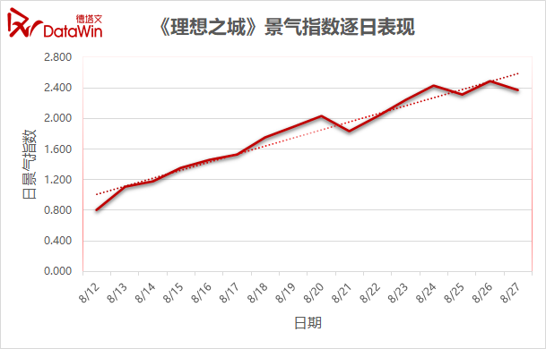 在德塔文的统计中,“理想之城”非常有特色。 是去年到现在唯一景气指数一路攀升的影视剧。