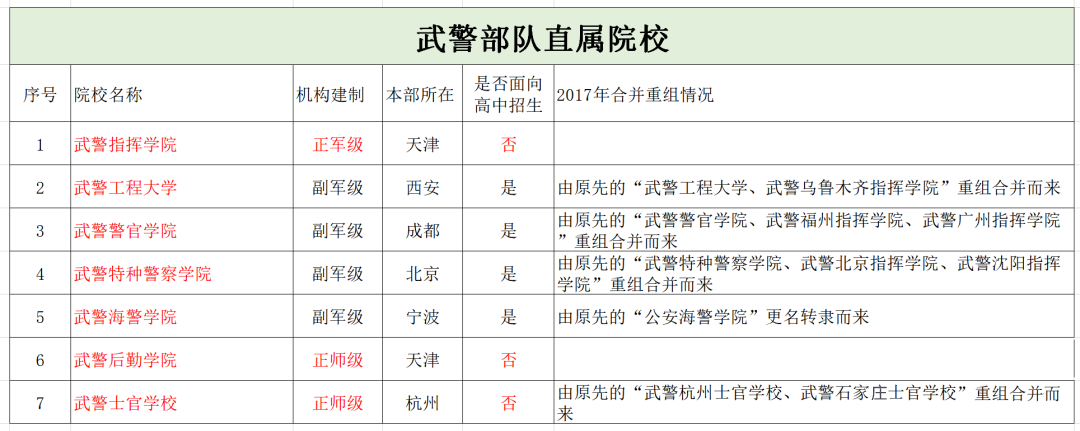 与此同时,许多警校也被降级。 目前主要在各军种直接领导下,受训练管理部门指导。