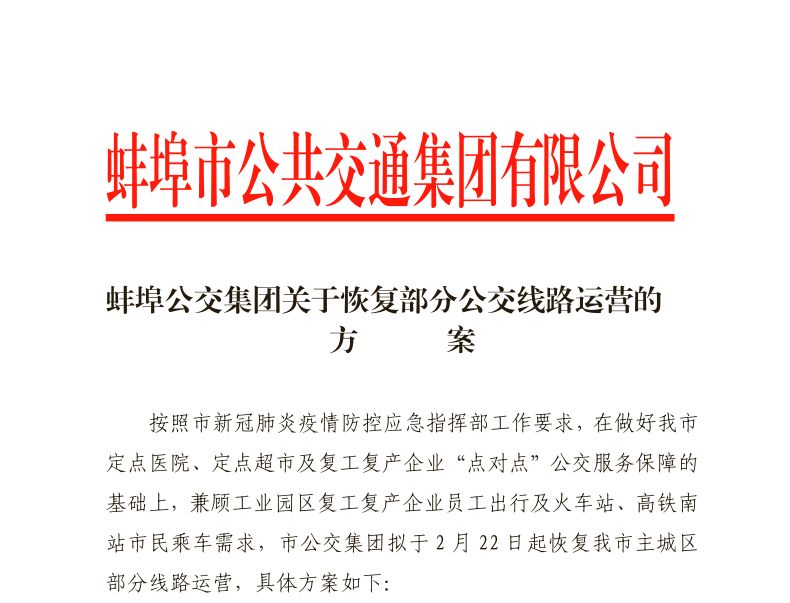 @蚌埠人!最新消息:蚌埠市部分公交线路明日恢复运营(内附具体线路)!