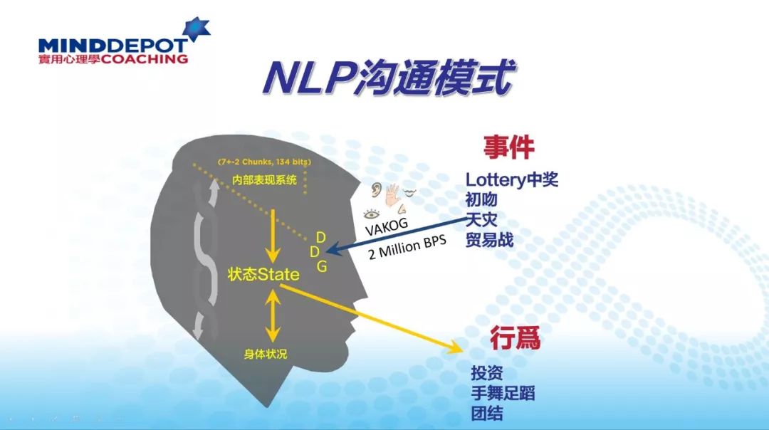 也可以说,NLP就是对成功人士的语言和思维模式进行解码,系统地总结成一套可以模仿和学习的成功模式。