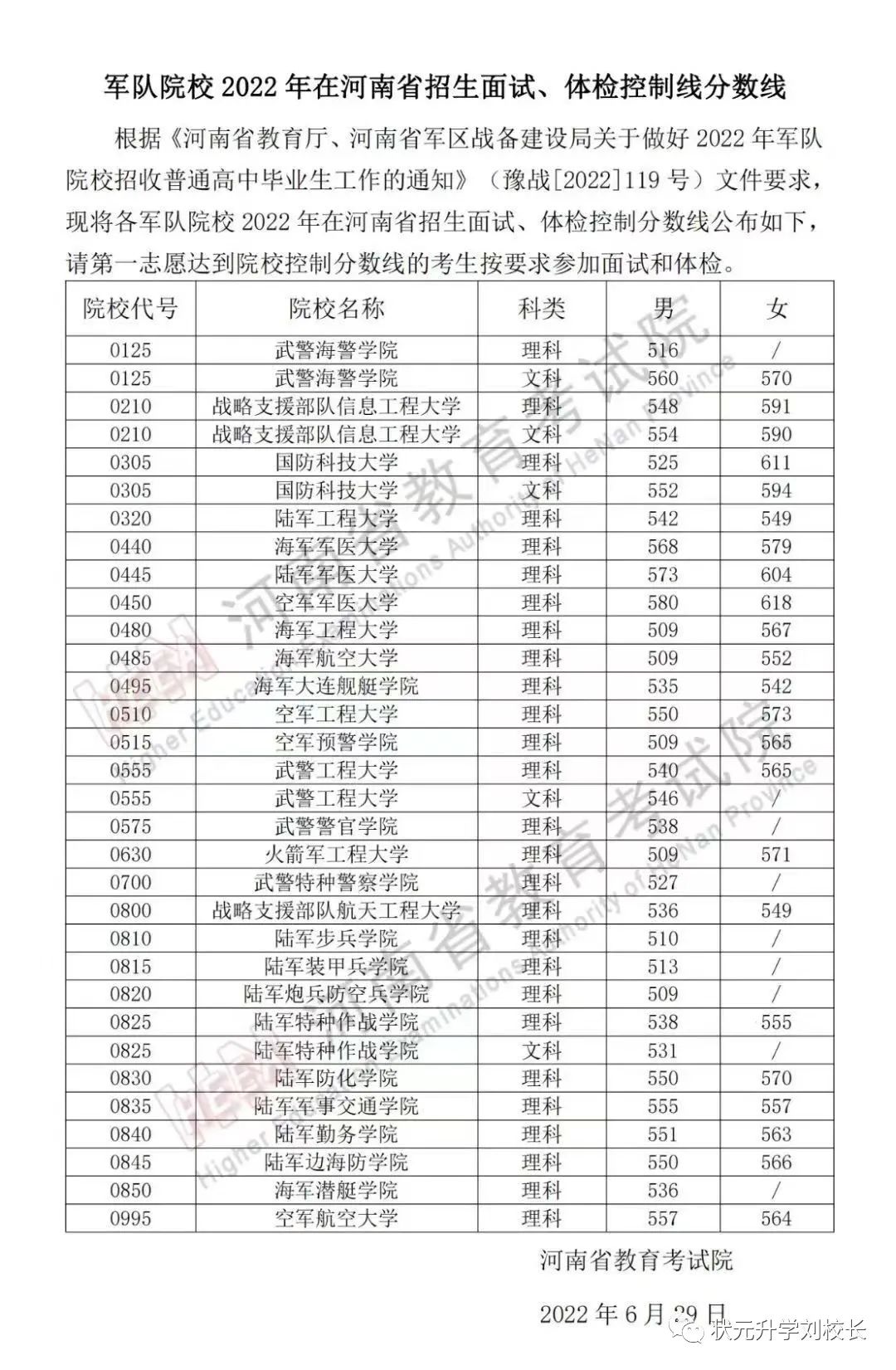 2022年全省公安院校广东省国防科技学院理科生525分、女生611分; 科学系女生542分,空军工程学院女生549分。 具体分数汇总如下表: