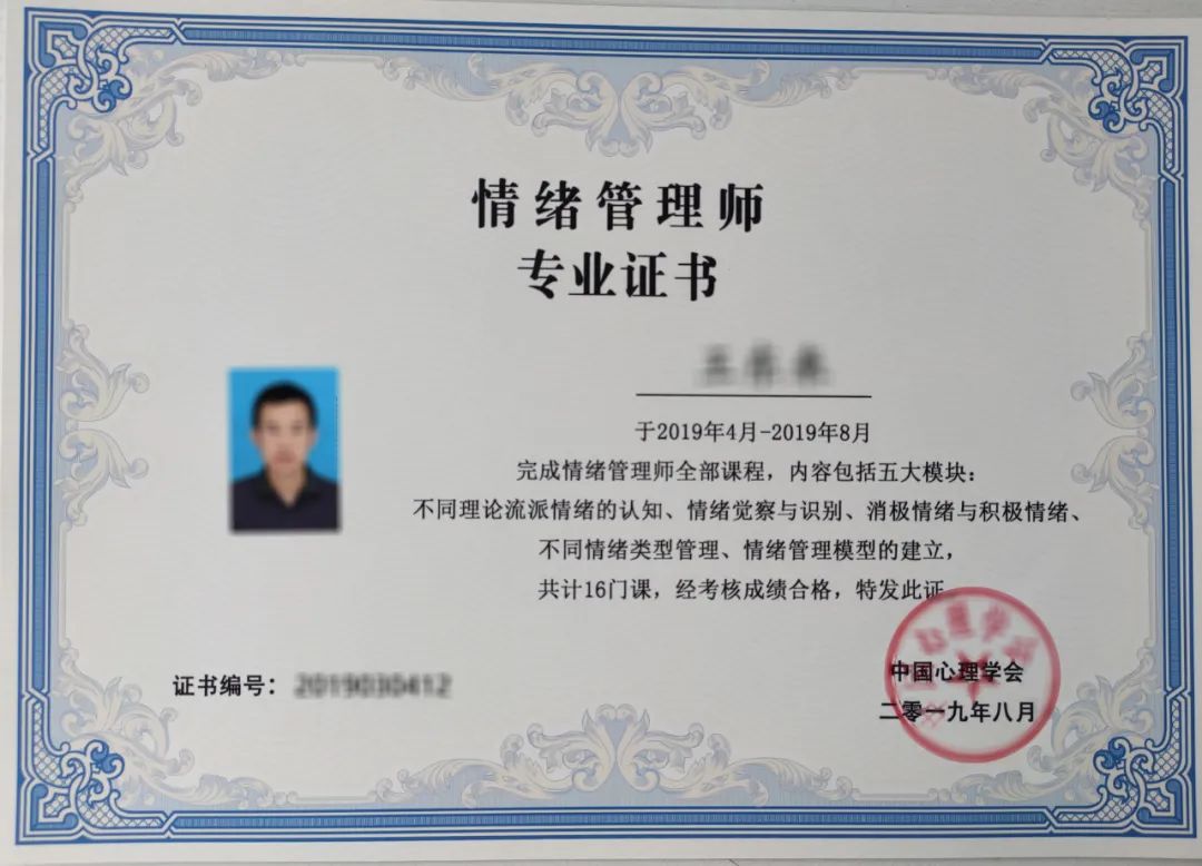 证书申请:学完全部课程并按要求完成作业的学生,可申请中国心理学会颁发的“情绪管理师”专业证书。