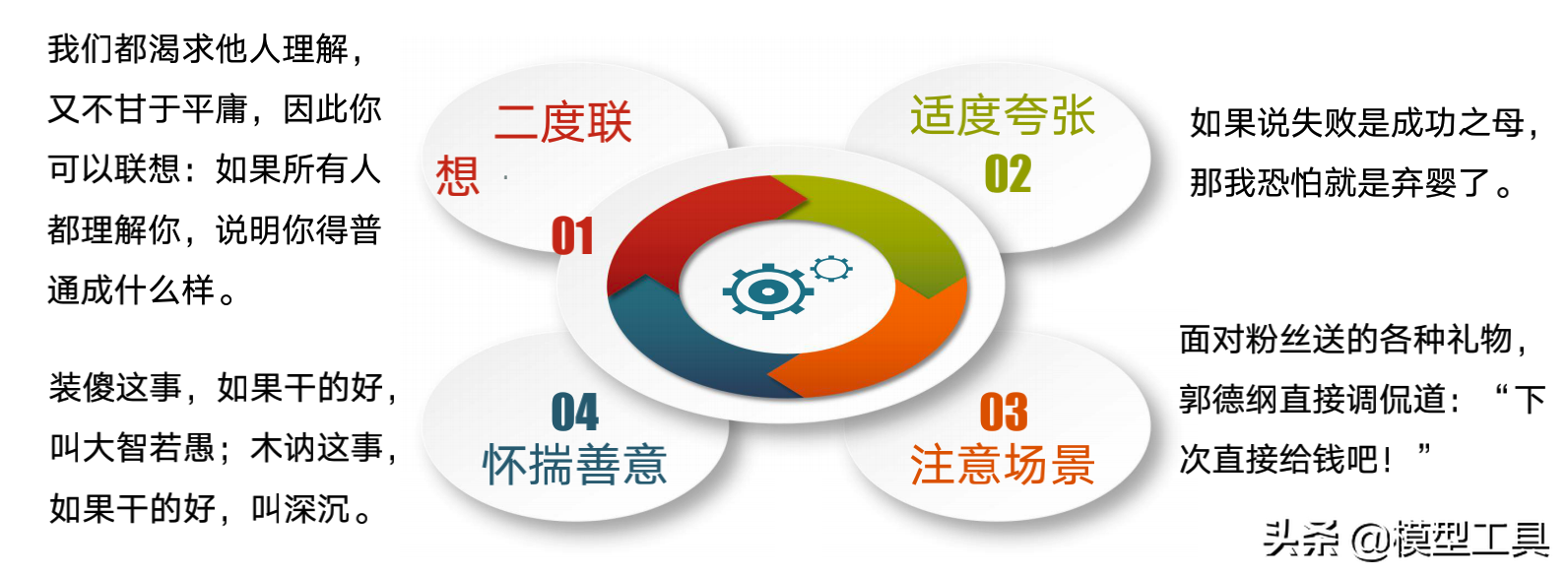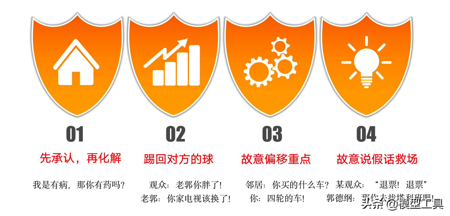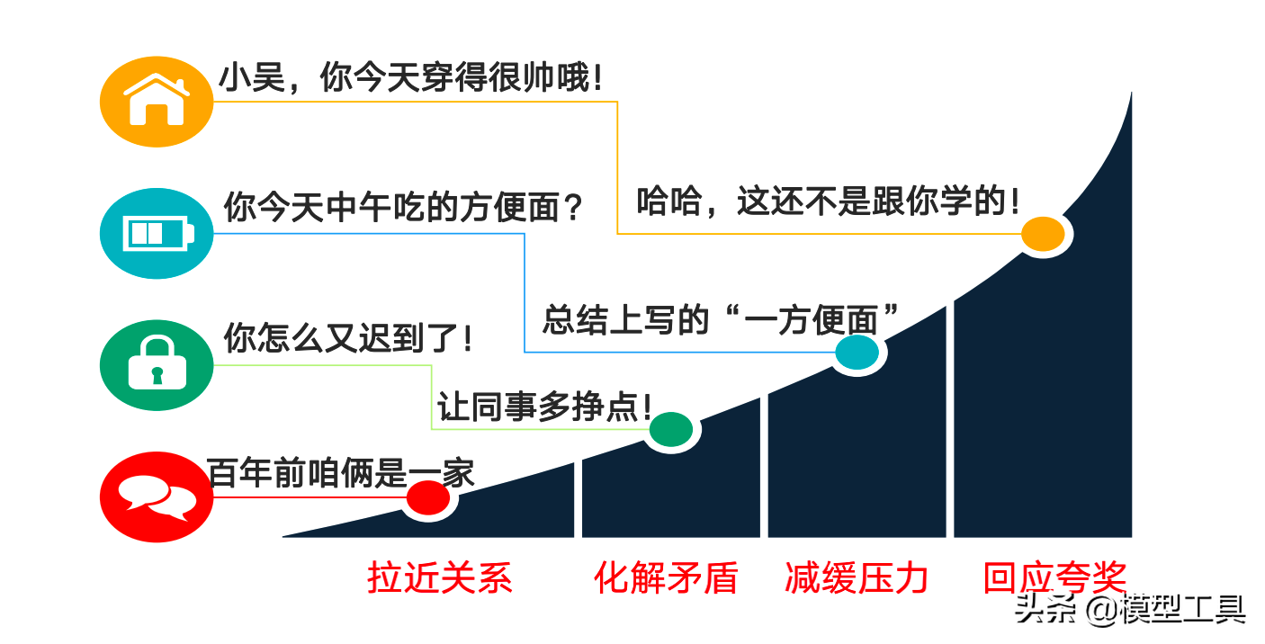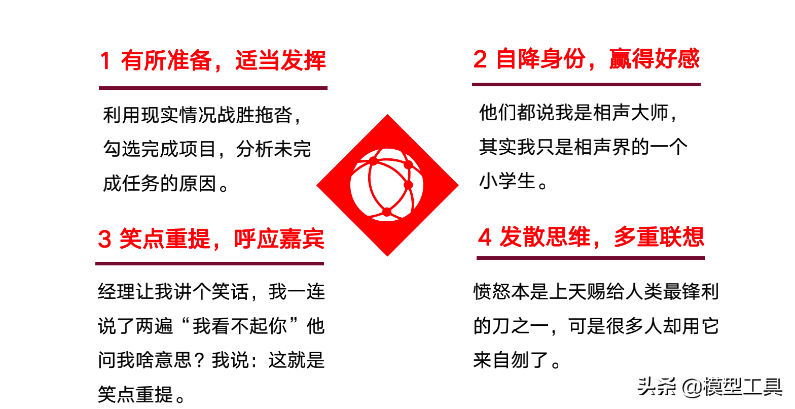 对应幽默的四种机制职场幽默风趣技巧答案,讲笑话需要从改变思维方式入手,即四种思维模式:
