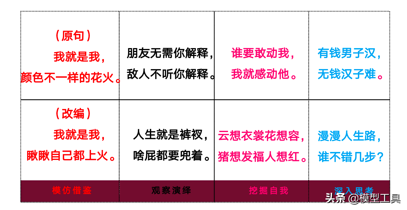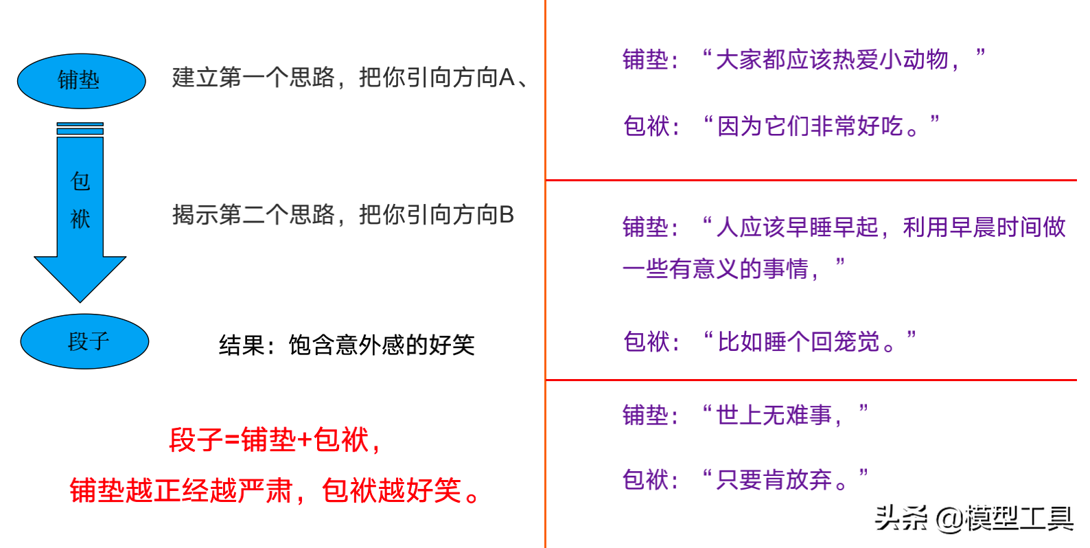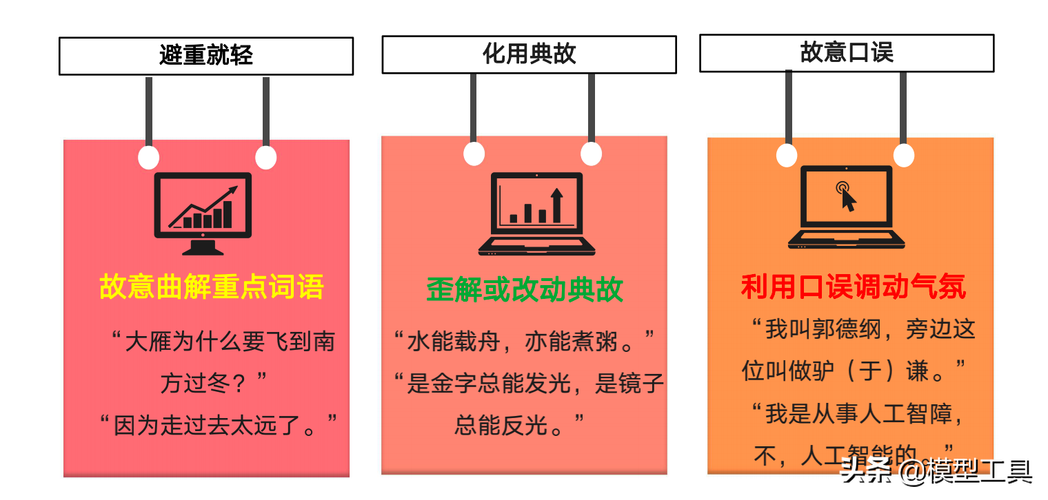 笑话的本质是一种欺骗性的思维。 因此,要想写出好的段子,可以通过以下四种方法来帮助训练欺骗性思维: