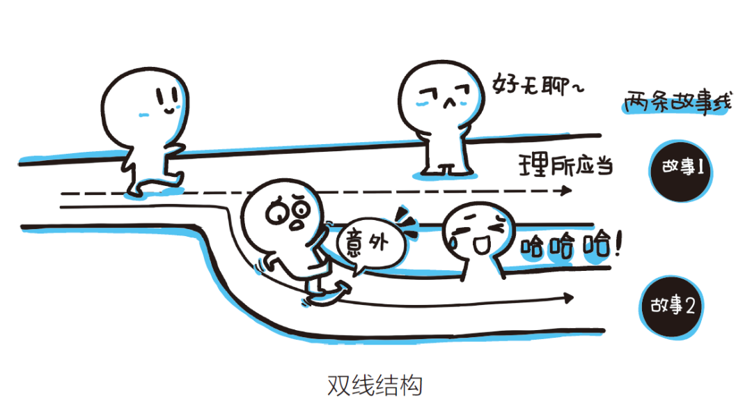 当你挖掘出自己独特有趣的观点时,不妨试试“熟悉”+“意想不到”的“双线结构”。 这样,你说的话不仅能打破你的预期,吸引眼球,还能引起别人的共鸣,容易被人记住。