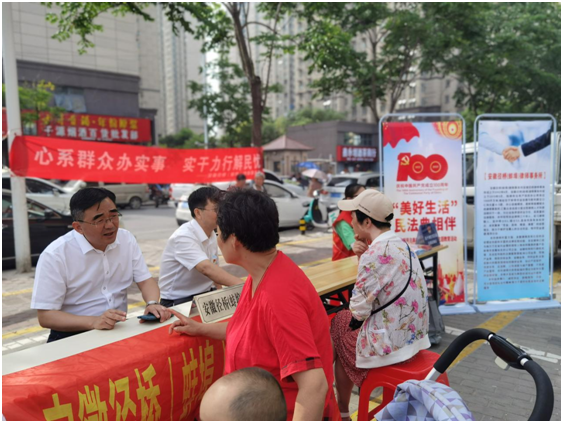 (7月1日,国盟所王文民律师接受群众普法指导,讲解法律知识)