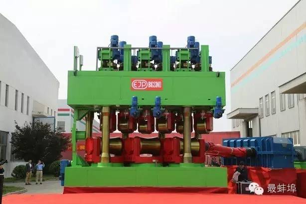 ▲昊众机械(安徽)有限公司由昊众国际有限公司与法国EJP机械有限公司于2007年共同投资成立,是小型精加工机械及兵器的专业制造商。 2015年4月,由其研发生产的世界最大九辊矫直机下线,是“中国制造”向“中国制造”转变的重要体现。 上图是世界最大的九辊矫直机正式交付柳州特钢。