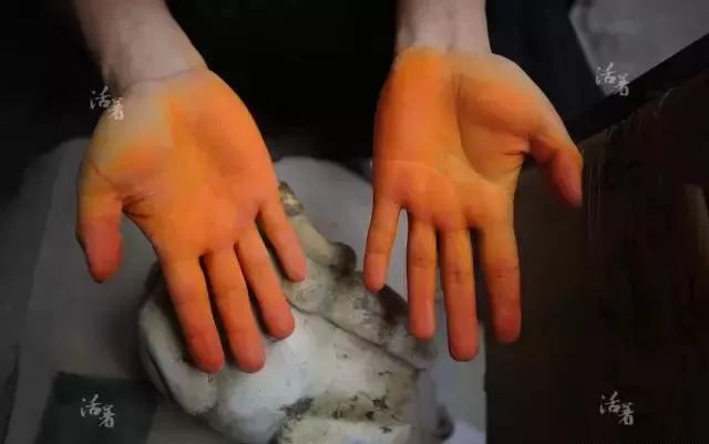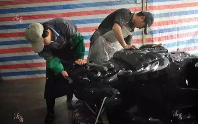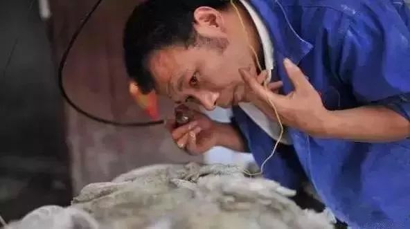 ▲仿古青铜器工艺中,有些玉石需要用实物来酿造。