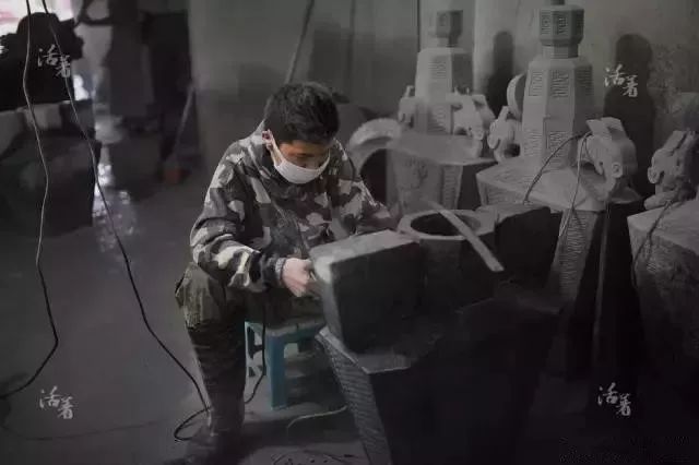 ▲工人正在制作仿古青铜器的坯料。 这是最基本的过程。 仿古青铜器都是批量生产的。