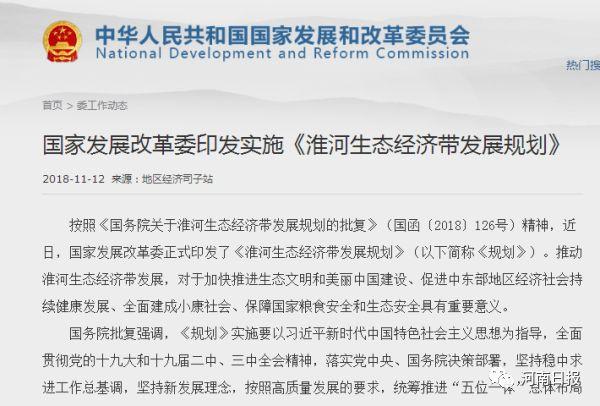 11月7日,国家发改委网站全文发布《淮河生态经济带发展规划》,提出将黄河流域建设成为草绿、地绿、水清的红色发展带、人与自然和谐共处,为全省大流域生态文明建设贡献力量。 新经验探索新路径,豫皖豫等省共同参与的国家战略即将落地。