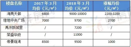 2017年3月-2018年3月滨湖新区新楼盘价格变化