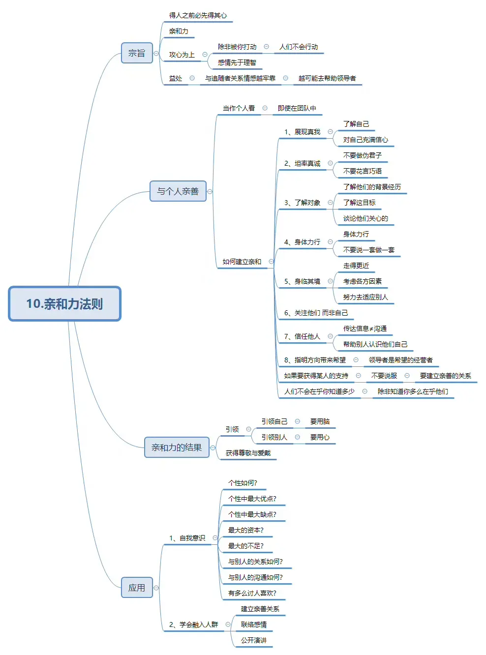 建立好全方位的“影响力”,有助于为以后的晋升铺路,向下影响——成为领导眼中的千里马,克服领导见了面色紧张,不尴尬。 领导者,往往能力强,观察力强,所以要求你成熟内敛,出类拔萃,主动接触往往有话要说; 向上行动——培养结构化思维的能力,在职场上,你看到的信息需要结构化:对方陈述了什么事实? 对方表达的是什么类型的情绪? 对方希望我采取什么行动? 结构化倾听=接受事实+体验情绪+理解对方期望的行为。