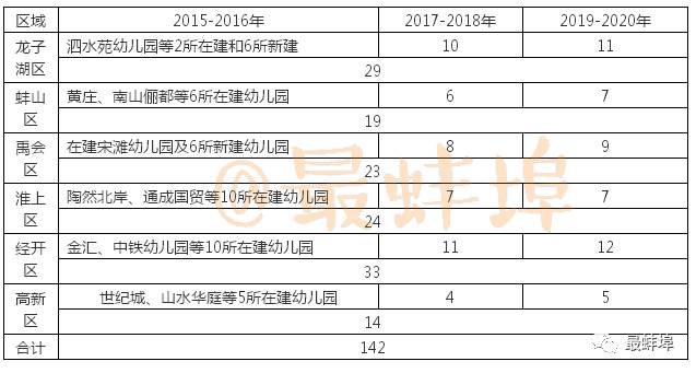 到2020年,中心城区共建成幼儿园142所。 具体分部及年度建设计划如下: