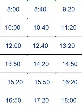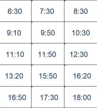 11、凤阳至板桥:7:20、9:40、10:40、11:20、14:30、16:20、16:40