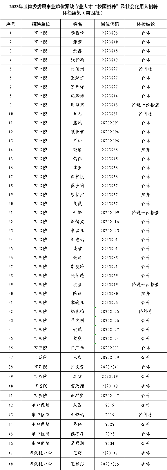原标题:关于发布2023年新乡市卫健委事业单位紧缺专业人才“校园急招”暨社会就业急聘复查结果公示(第四批)的公告