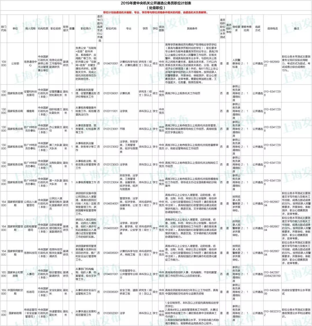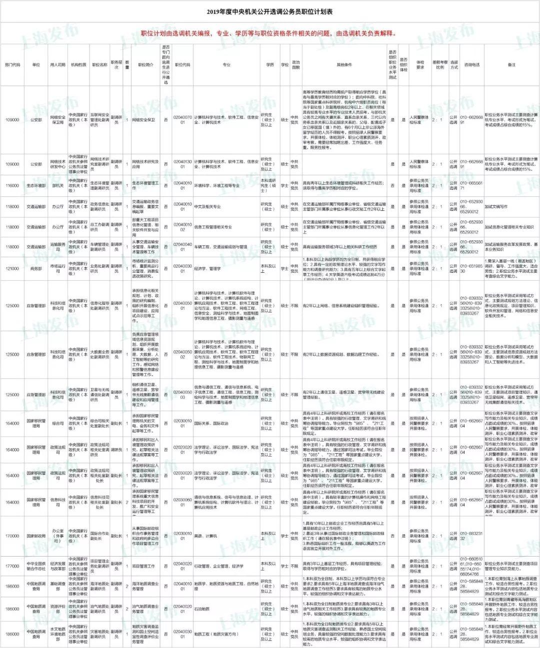 详见2019年中央机关公开选拔任用公务员名单和2019年中央机关公开选拔任用公务员名单(以下统称“职务名单”),《职务名单》可通过2019年中央公务员公开招录和公务员公开招聘专网(http://subb.scs.gov.cn/lx2019,以下简称“选录专网”)或国家公务员官网查询局(http://www.scs.gov.cn) 考生如需咨询《职位清单》相关事项,可按《职位清单》公布的联系电话直接与有关部门联系。