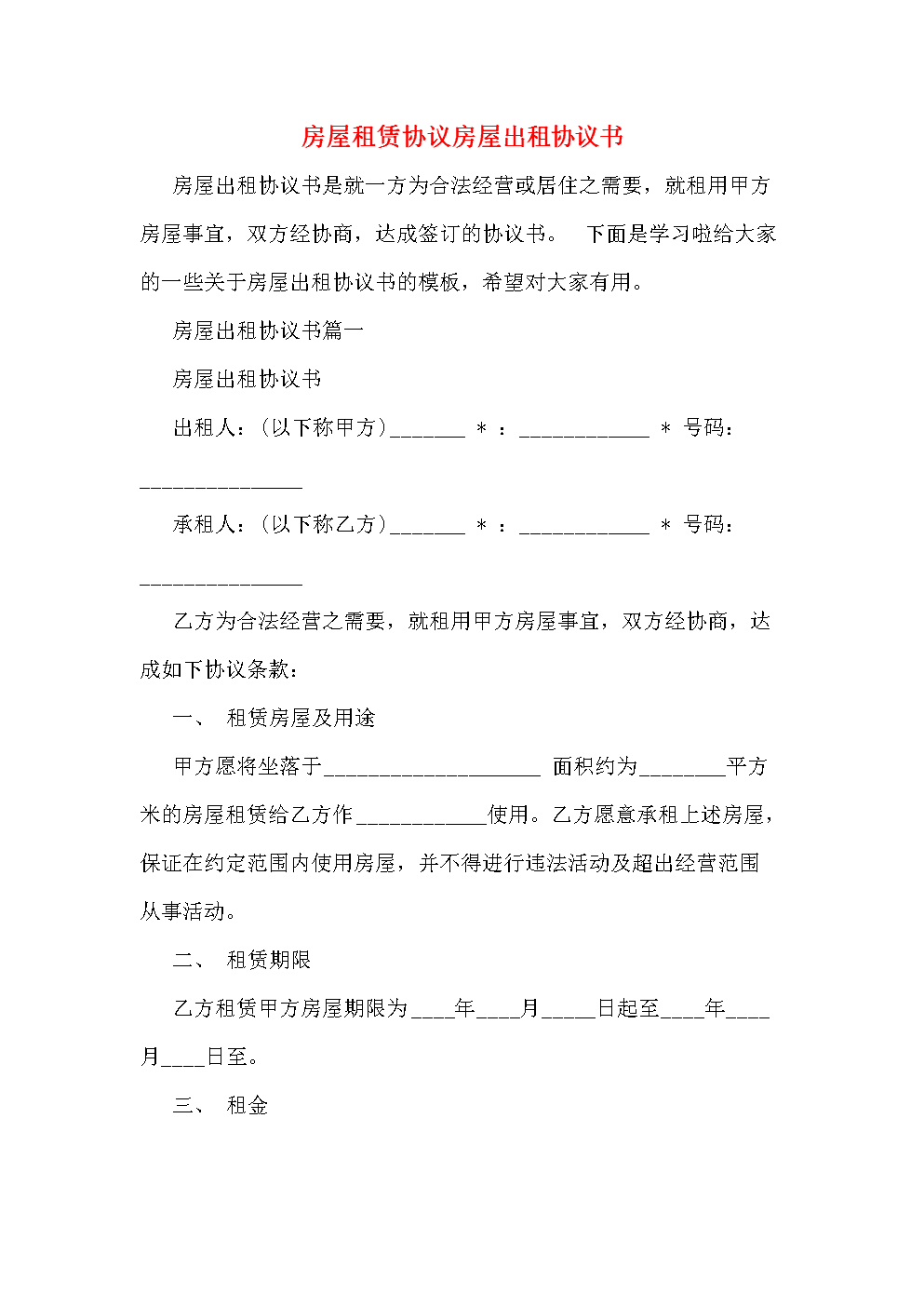2、甲方转租给甲方的房屋租赁期为一个月。 从年月日到年月日。 甲方向乙方承诺,所租房屋仅供使用。 租赁期满,乙方有权收回转租房屋,甲方应按期归还。 甲方如要求续租,须在租期届满前一个月书面通知乙方,并经乙方同意重新签订租赁协议。