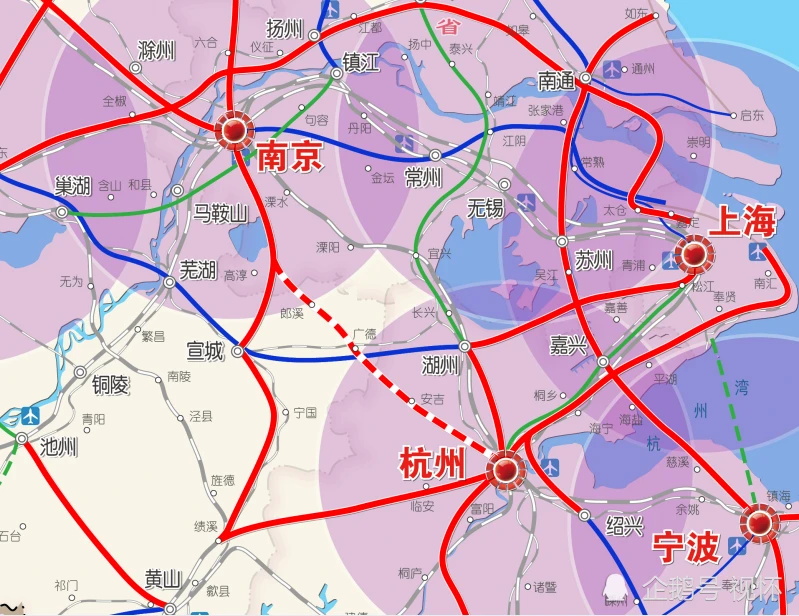 依托多向立体内外交通主通道,以上海为核心,以沪、杭、合、宁为中心,做强京沪、沪杭、沪宁、宁杭、沪宁、和安、宁武安、永州等城际交通走廊功能。