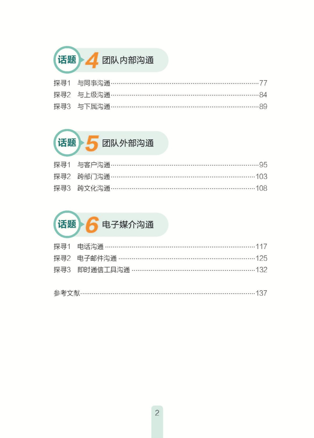 本教材从传播学基础理论入手,逐步过渡到日常传播、求职笔试传播、团队内部传播、团队外部传播、电子媒体传播。 第一个主题侧重于传播学理论知识的讲解。 从第二个话题开始,着重教授职场常见的沟通场景职场中的沟通技巧,详细讲解职场常见的沟通方式,循序渐进,提升沟通技巧。