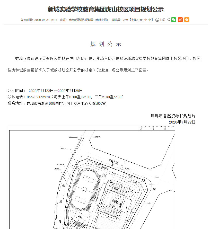 7月22日,在市自然资源规划局发布的公告中,尚城实验教育集团还将新建一所虎山学校,拟选址在虎山街西侧、电厂六路东侧。