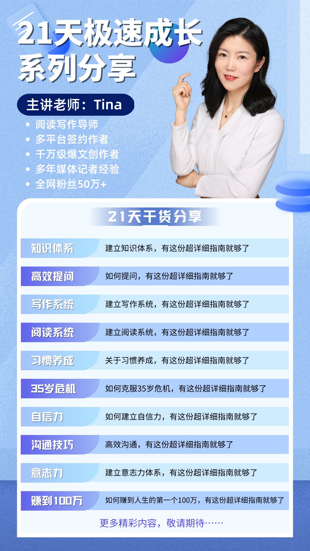 所以我们会单独出一个视频来讲解,大家一定要持续关注我们的21天超级成长系列!