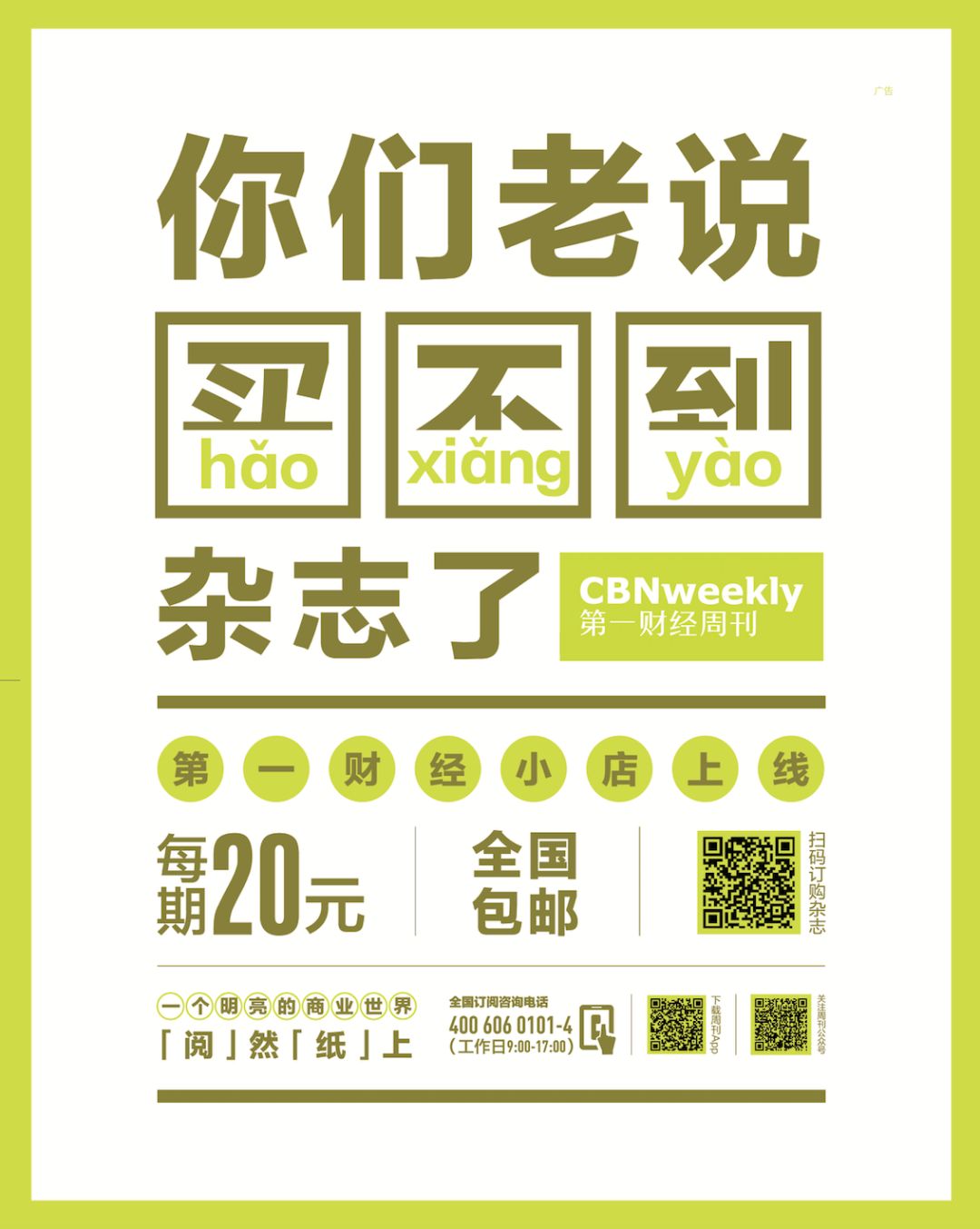 有读者多次向我们反映,路边的报摊越来越少,买不到周刊。 为了解决这个订购渠道问题,第一财经商城已经上架了周刊订阅! 单期20元,全年599元,全省包邮!点击下方海报订阅
