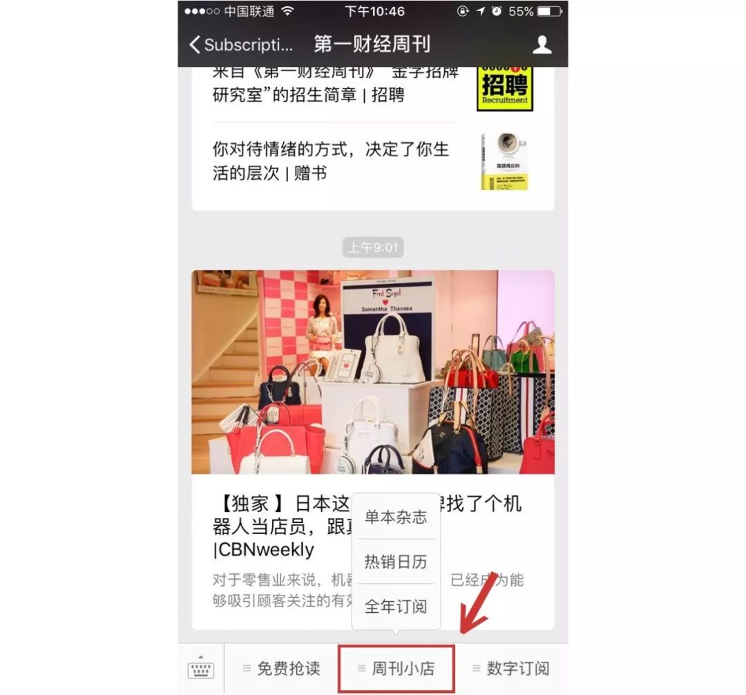 此外,您还可以从每周陌陌公众号顶部的“每周商城”栏目进入订阅页面