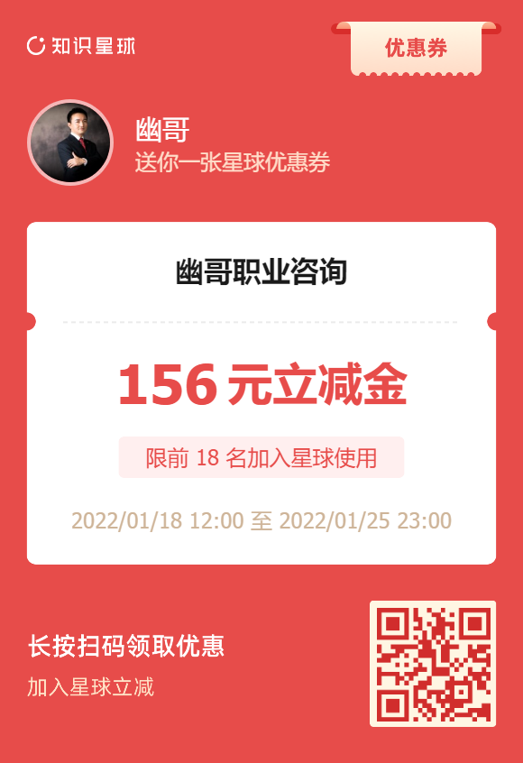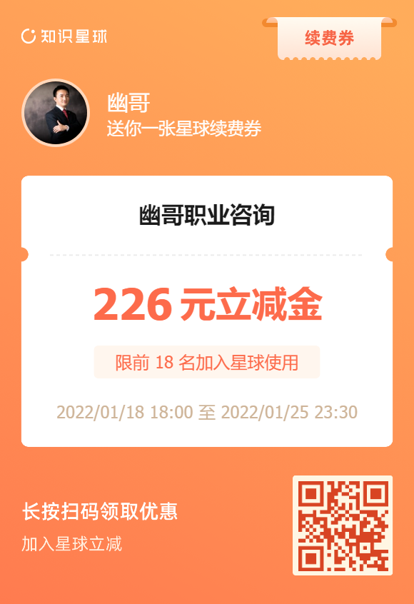 这套课程系统的讲述了跳槽的方方面面,很多我文章里不方便讲的知识点都放到了这套课程里,看到就赚到!
