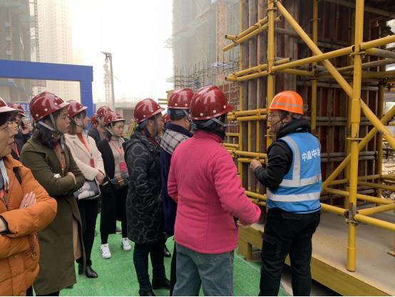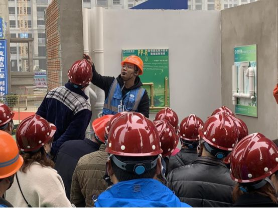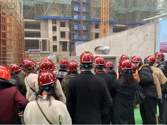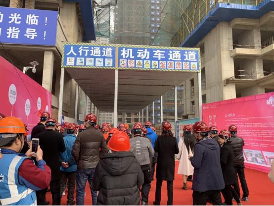 踏入工地后,房东们开始了与成长中家园的第一次“亲密接触”。 在十七冶公司工程部部长于帅帅的带领下,他们先后考察了各个展示区。 居民们装备齐全,步入工地模型展示区。 从预制构件、防水层、水路和电路线路,到现场展示的用料精挑细选,见证了禹州商城的建筑品质。