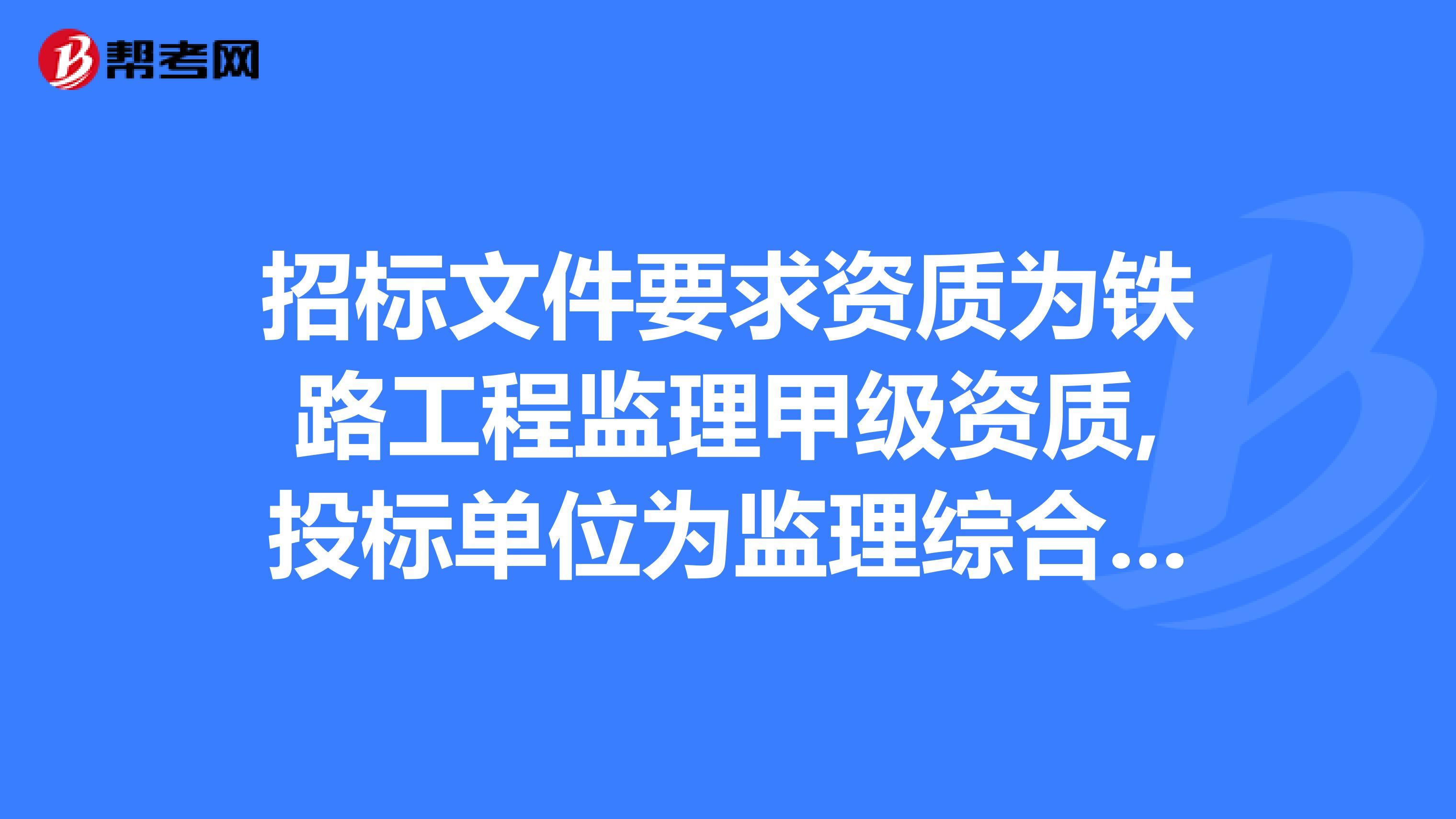 (3)主要人员最低要求: 总监理工程师:具有中级工程师(交通土木工程)职称,持有交通运输部道路工程监理工程师资格证书蚌埠烟厂招标,并在投标人注册,并从事过相关工作至少一个双钻孔跨度不超过200m的特二桥施工监理监理协议段负责人(可以是独立的二桥项目,也可以是多座特二桥的项目在施工投标部分)(监理协议部分的负责人是指总监理工程师、董事或驻地监理的代表)。