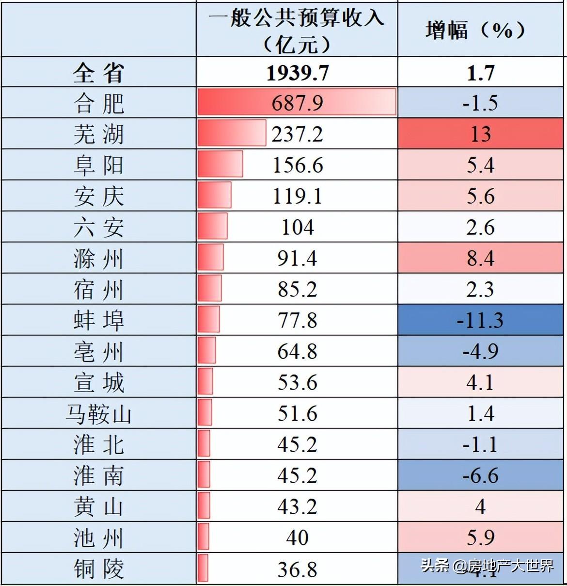 安徽财政:逼近2千亿,合肥最强,芜湖增速第一,6城负增长,蚌埠最惨
