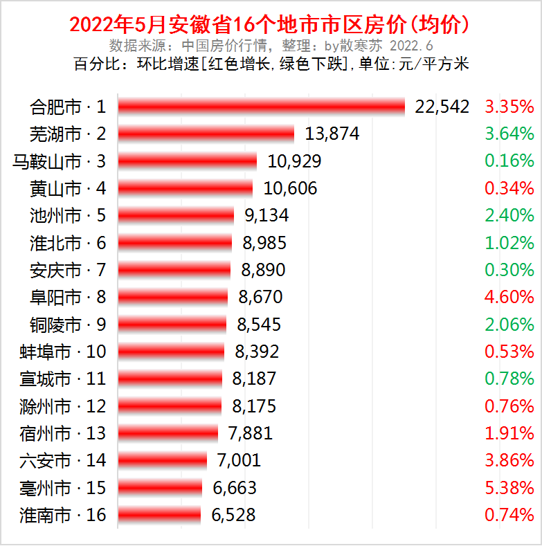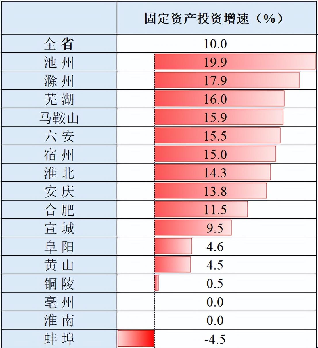 但合肥、铜陵、亳州、合肥均出现下滑,可见经济下行压力较大。
