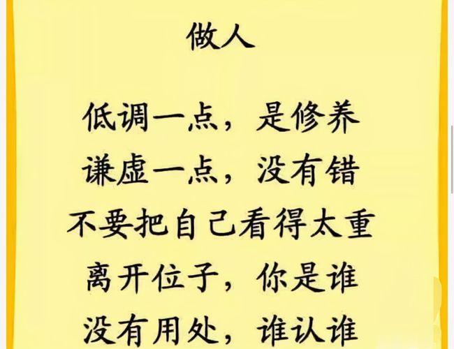 一个人再有智慧、有能力、出身再好,如果不懂得做人、做事,最后的结局肯定是灰暗的。 做得好。 做人、做事、做秀,不仅是一门艺术,更是一门科学。 谁能把大道理看得明白、看透、看得通俗易懂,就像《英雄无敌》中武术的最高境界,“手中无剑,心中无剑”,就能做人,做事游刃有余,运筹帷幄,必能高飞!