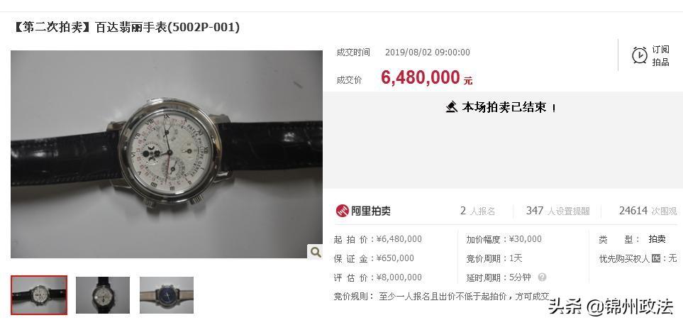去年7月15日,扬州市高级人民法院在“阿里拍卖会”上拍卖程寒侵占的财产,引起广泛关注。 程涵盗用的其中一条表带起拍价高达720亿元。 竞拍期间无人出价,第一轮拍卖失败。