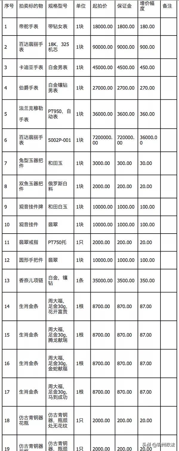 首场拍卖会上,程涵共拍得19件拍品,包括手表、戒指、翡翠、项链、金条等。记者注意到,在19件拍品中,有6件手表,其中2件是“百达翡丽”。 Philippe”品牌手表,最贵的劳力士手表(估价800万)起售价720亿元。 到第一次拍卖结束时,这只劳力士手表没有灵芝,最终通过拍卖。 在这19件物品中,还有一枚香奈儿品牌的戒指未能售出。