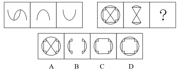 67、从给出的四个选项中,选择最合适的一个填入问号,使其呈现一定的规律性: