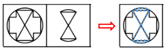 构成元素相似,前两个图形与第三个图形部分相似,风格操作优先。