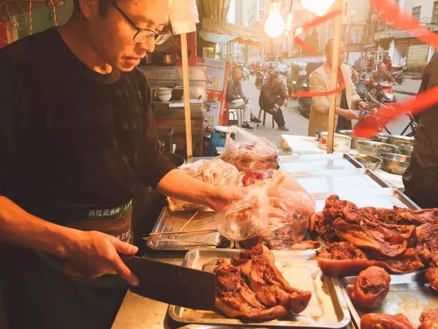 从一端到另一端,是一系列的熟食,但也正因为如此,选择困难症的老吃货们开始慌了,左顾右盼,来一份招牌羊肉吧!