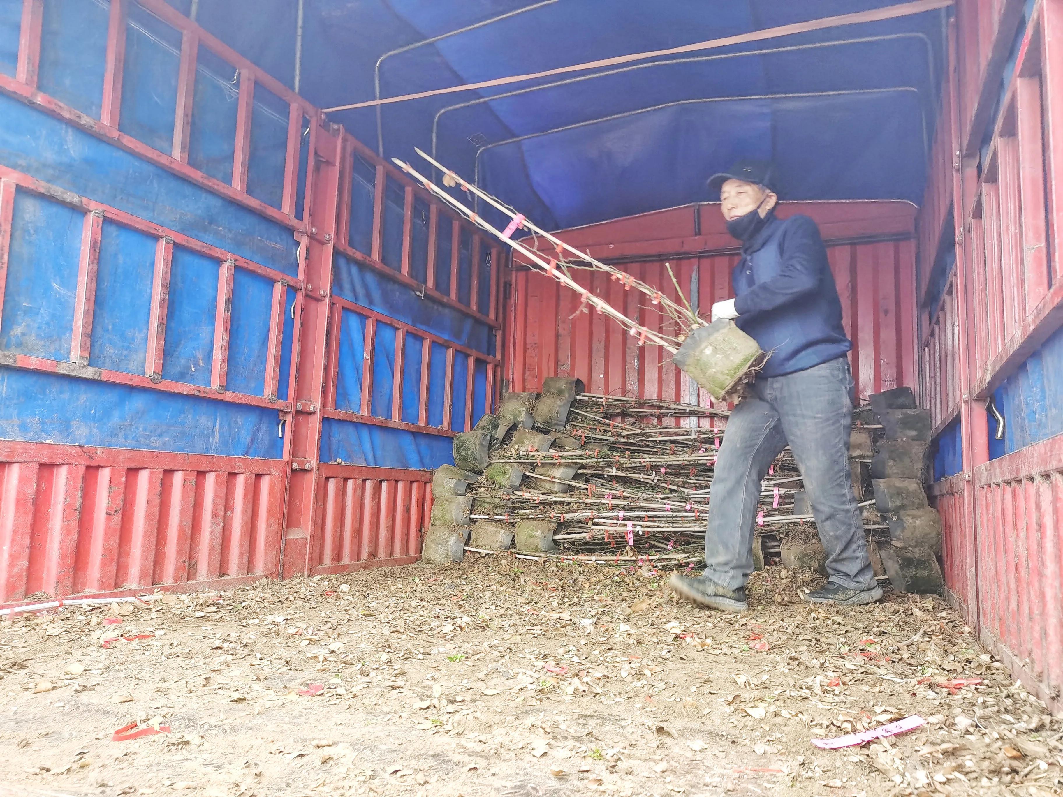 梅香欢乐小镇公园工作人员老吴正在卸花木