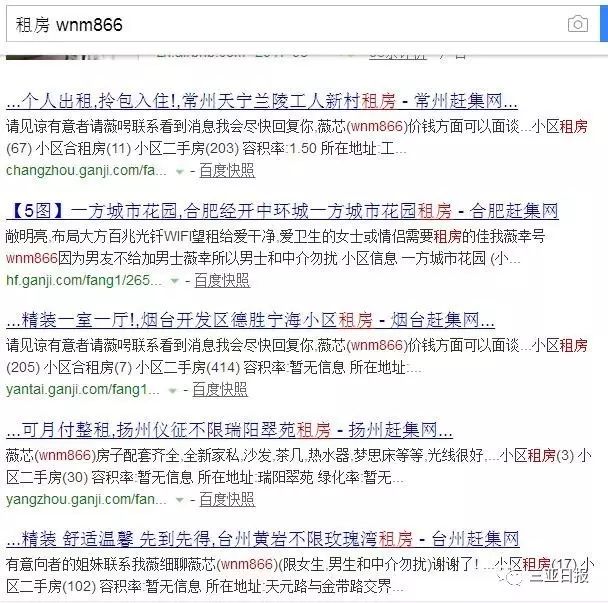 海南晚报记者登录赶集网、58同城等网站了解到,在发布的租房信息中,只要是优质低价房源,都会有要求“加沫沫,仅限男士,男士请勿打扰”、“房东”提供的微信ID通常以图片的形式呈现蚌埠房屋出租 赶集网,部分沫沫号码还以阿拉伯数字、汉字等不规则方式呈现和序列号。